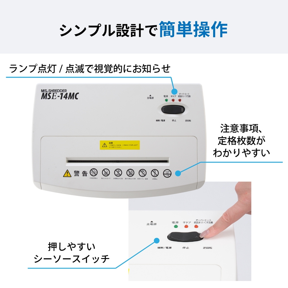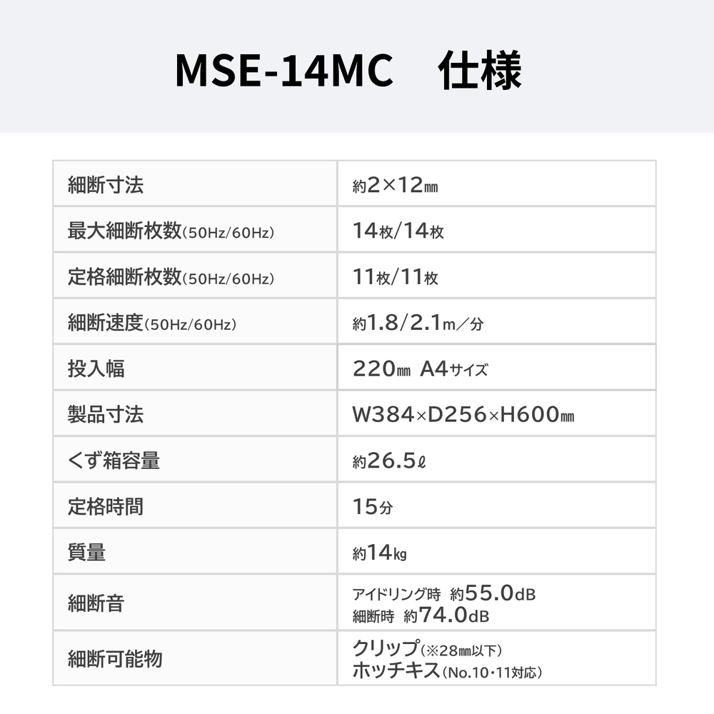 ●最大細断枚数(50/60Hz):14枚 / 14枚 :A4PPC(64g/m2)