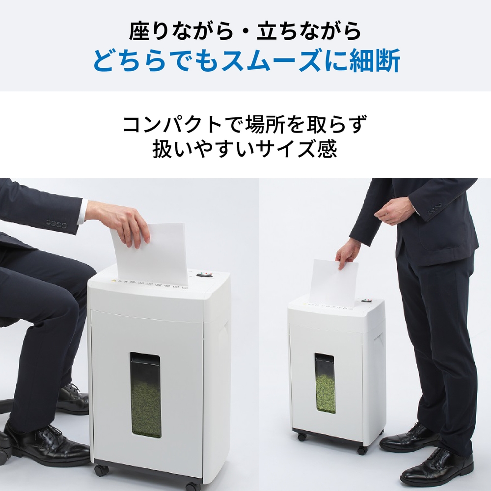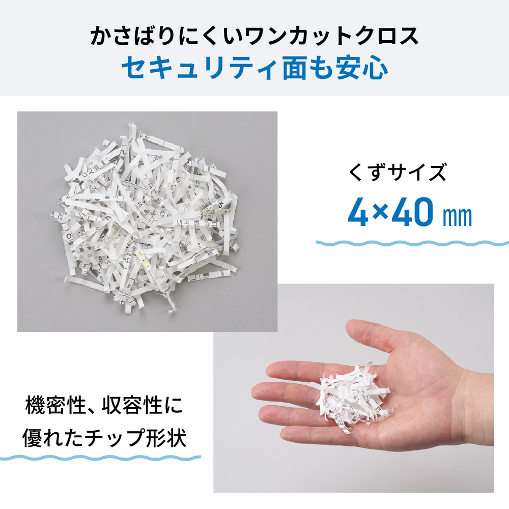 ●カッターが1段のためコストパフォーマンスもよく、くずはチップ状となり、機密性、収容性に優れています。