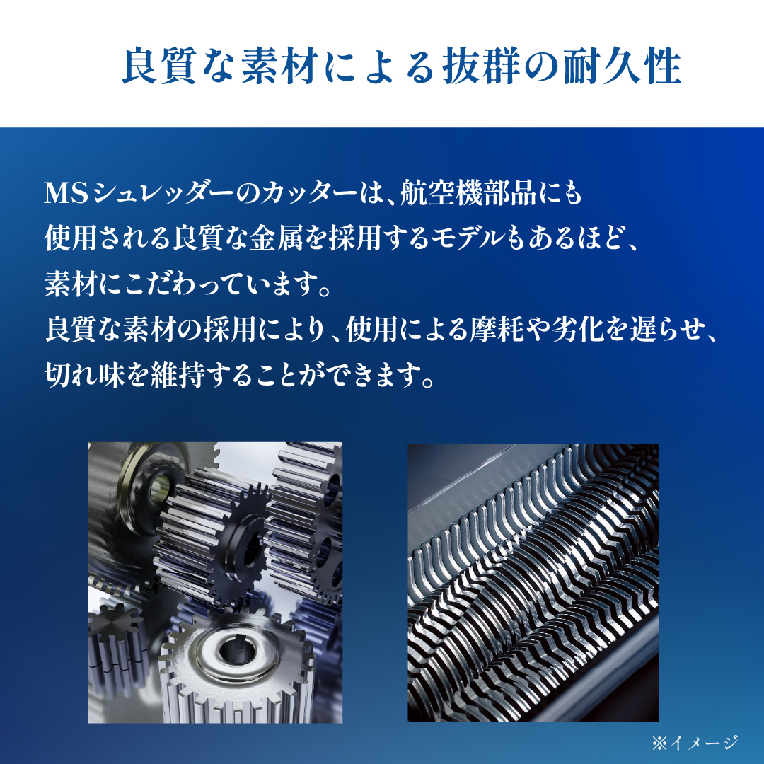●縦切りと横切りの役割の異なる2つのカッターを搭載し、2段階でカットすることで静音かつスピーディーな細断を実現します。