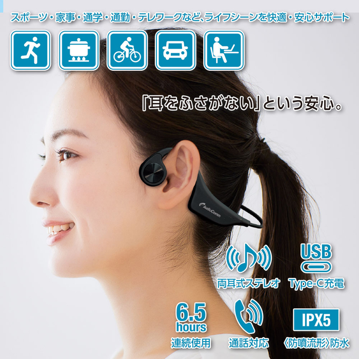 ●両耳式骨伝導で高音質のステレオサウンドが楽しめます。