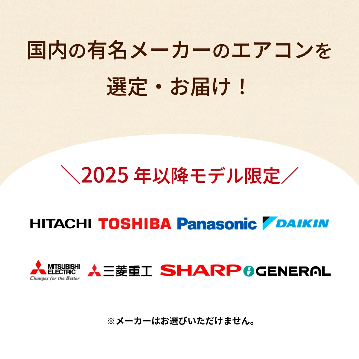 国内メーカー厳選「おまかせエアコン」工事費込みセットです。