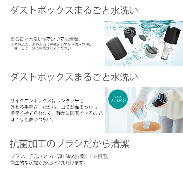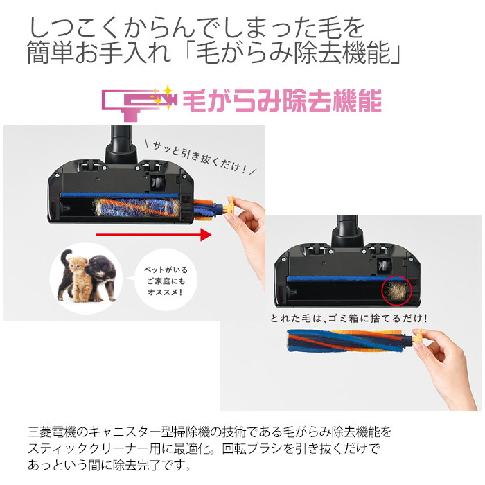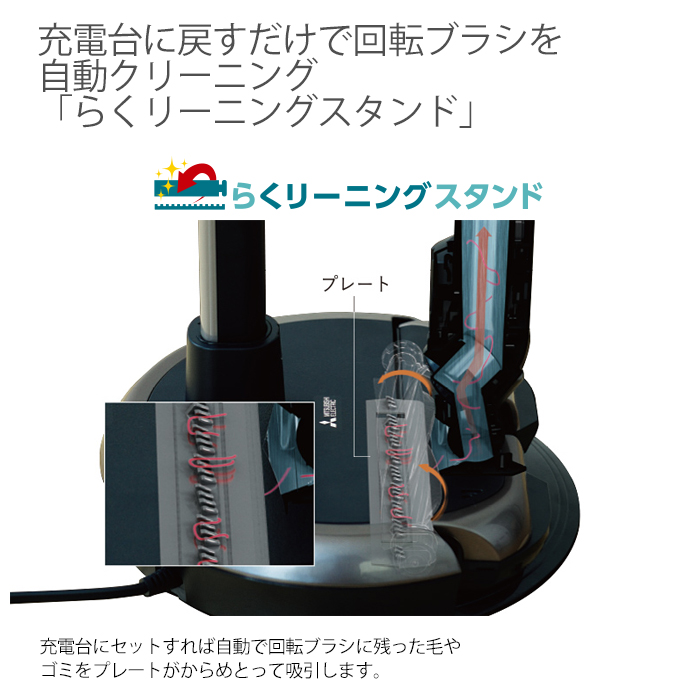 ●回転ブラシを自動でお手入れ、らくリーニングスタンド