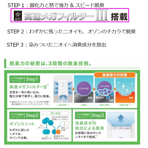 ●【独自の「トリプル脱臭」がニオイの問題を3ステップで解決!】