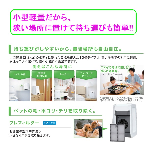 ●適用床面積:~ 10畳 (発生源の量による)