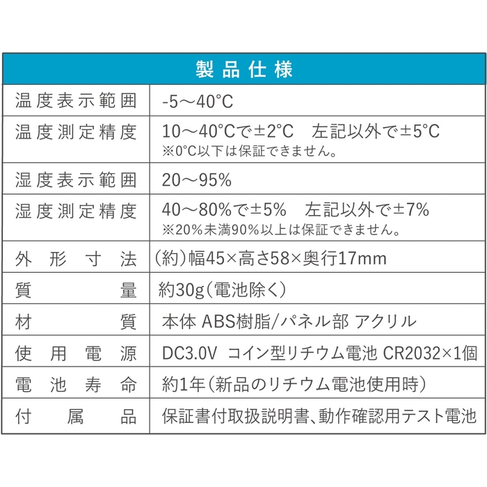 ●使用電源:DC3V コイン型リチウム電池 CR2032×1個