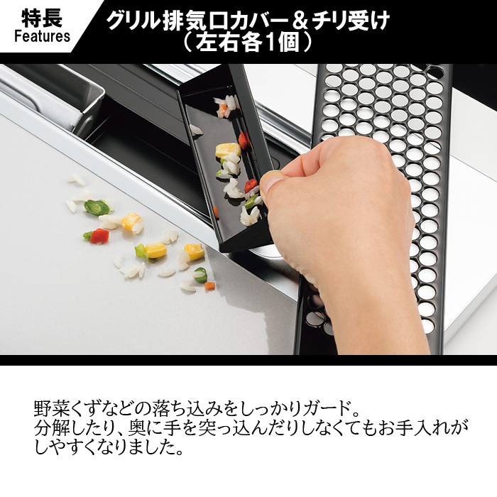 ●・グリル排気口周囲カバー:○(固定式+着脱式チリ受け)