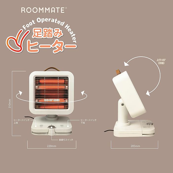 ●左右90度に自動で首振り可能です。(ON/OFF切替)