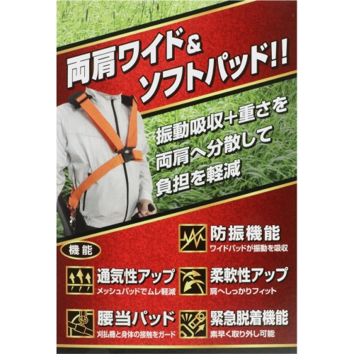●緊急時脱着可能なワンタッチ式の刈払機用肩掛けバンドです。
