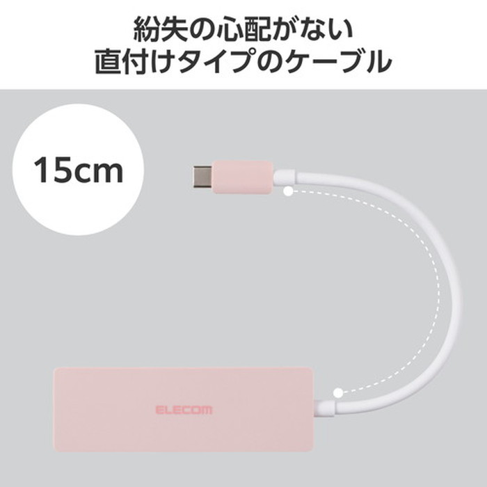 ●ケーブルは紛失の心配がない直付けタイプで、ケーブル長は取り回しのしやすい約15cmです