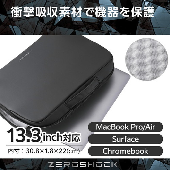 ●本体内装パソコン収納部には、軽量化と衝撃吸収を両立する低反発ウェーブカットウレタンフォームを内蔵しています