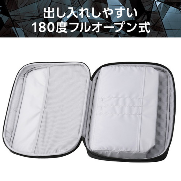 ●本体内装には、マウスやケーブルなどの周辺機器を整理して収納できるストレッチメッシュ素材のオープンポケットを2つ備えています