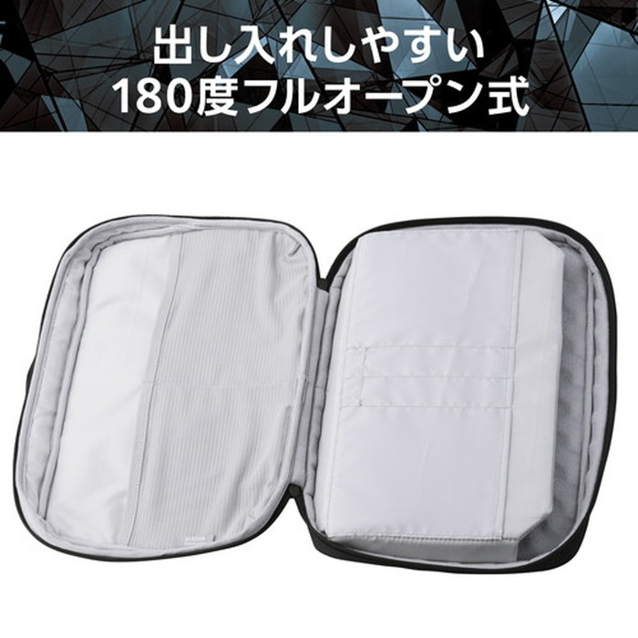 ●本体内装には、マウスやケーブルなどの周辺機器を整理して収納できるストレッチメッシュ素材のオープンポケットを2つ備えています