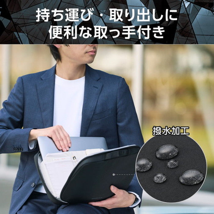 ●トートバッグやブリーフケースなど横長のバッグから取り出す際や、持ち運びの際に便利なハンドルが付いています