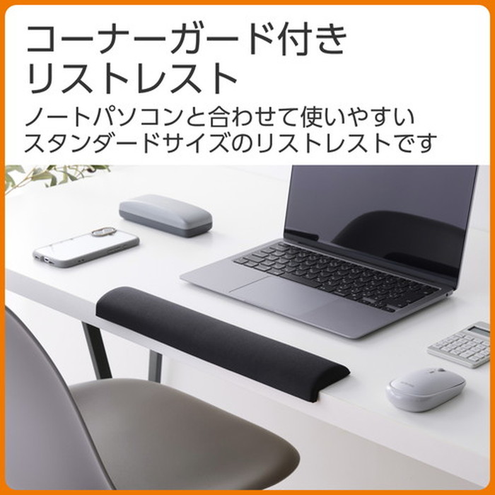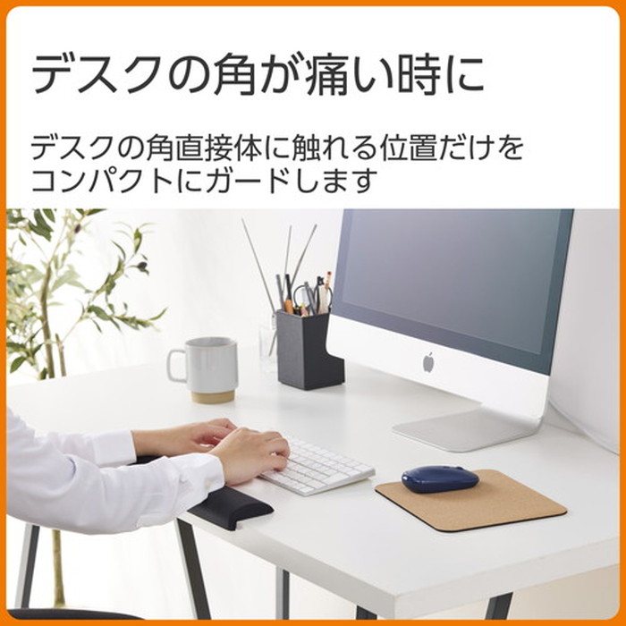●コーナーガードクッションがデスクの角をしっかり覆い、手首や腕が角に当たらない設計です
