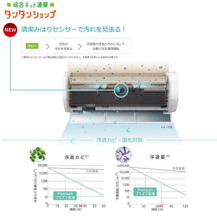●エアコン内部を一年中監視し、カビの発生を防ぎます