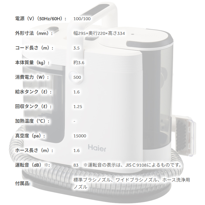 ●付属品:標準ブラシノズル、ワイドブラシノズル、ホース洗浄用ノズル