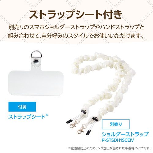 ●ショルダーストラップやハンドストラップが取り付けられる、ストラップホールシート(1つ穴・半透明タイプ)が付属しています