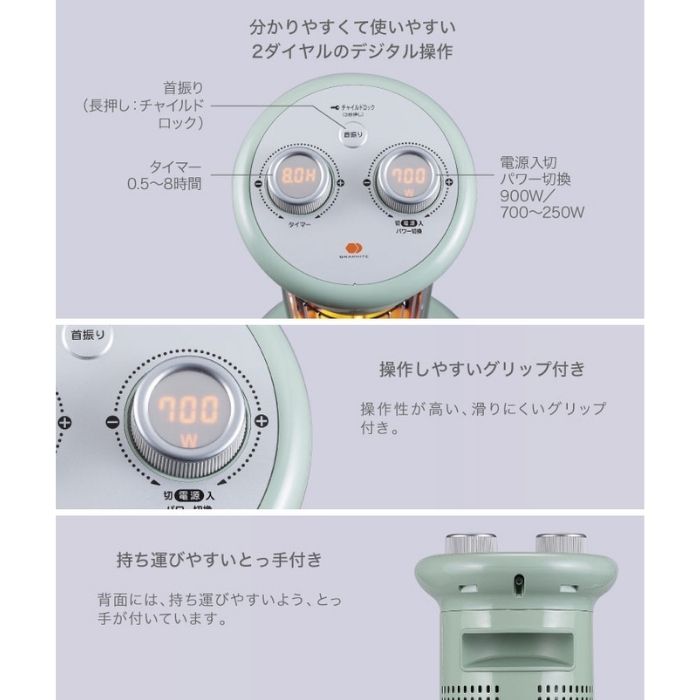 遠赤グラファイトヒーター 起動はわずか0.2秒!体の芯まで暖める グリーン