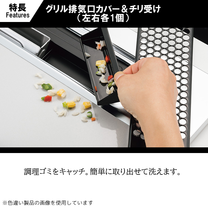 ●【ヒートカットトップ】バーナーまわリは、煮こぼれなどがこびりつき、お手入れに時間がかかる…。バーナーからの輻射熱で熱くなることが原因です。温度軽減効果があるトップレートなら、バーナー周りがこびりつきづらく、お手入れをラクにします。