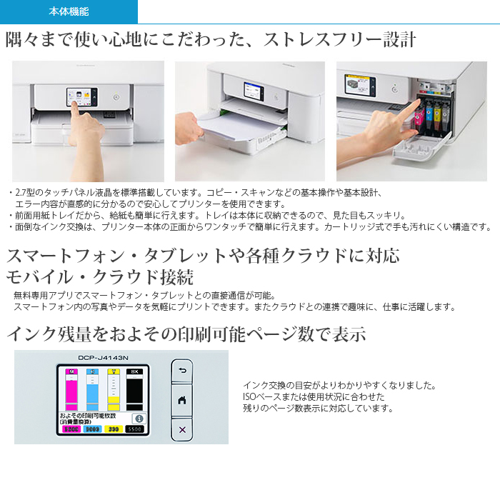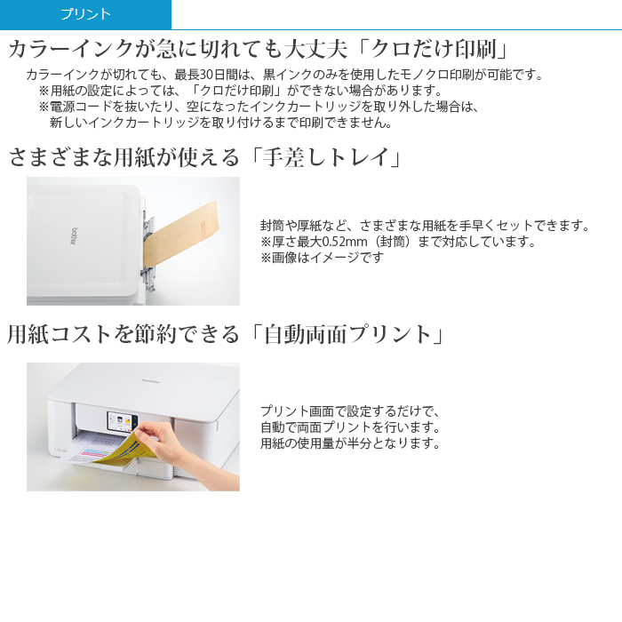 ●※電源コードを抜いたり空になったインクカートリッジを取り外した場合、新しいカートリッジを取り付けるまで印刷不可■ブラザーのポイントサービス「トク刷るポイント」が利用可能※要登録。