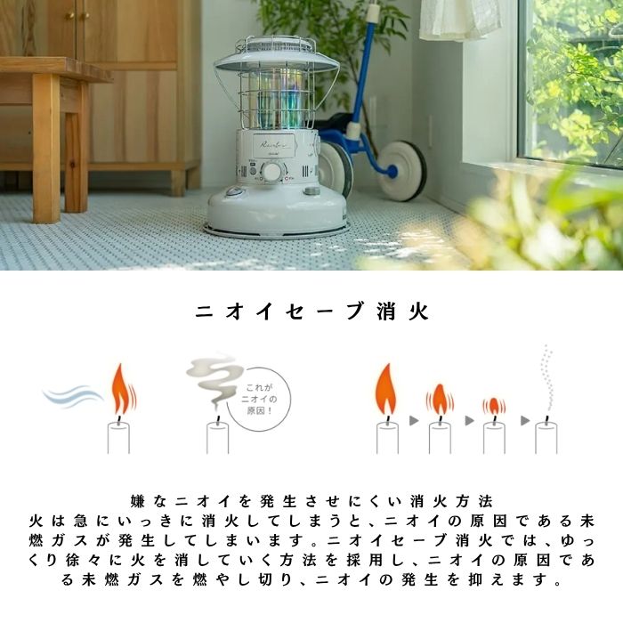 ●ニオイの原因の未燃ガスを燃やしきりニオイの発生を抑えるニオイセーブ消火