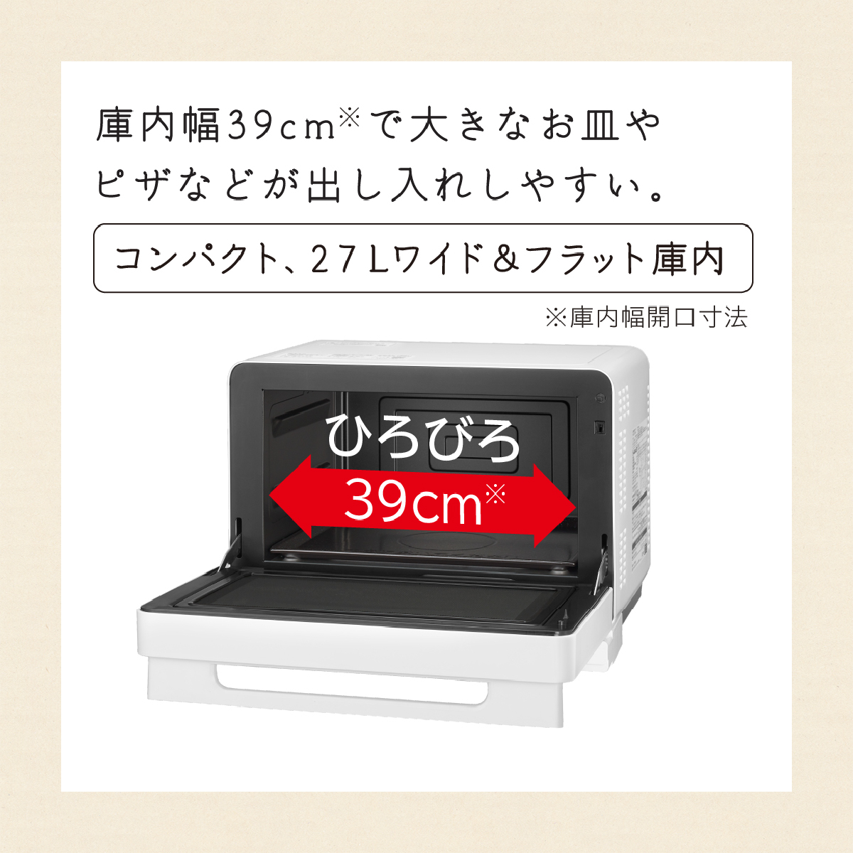 庫内は幅広くワイド設計でお皿やピザなどの出し入れもらくらく