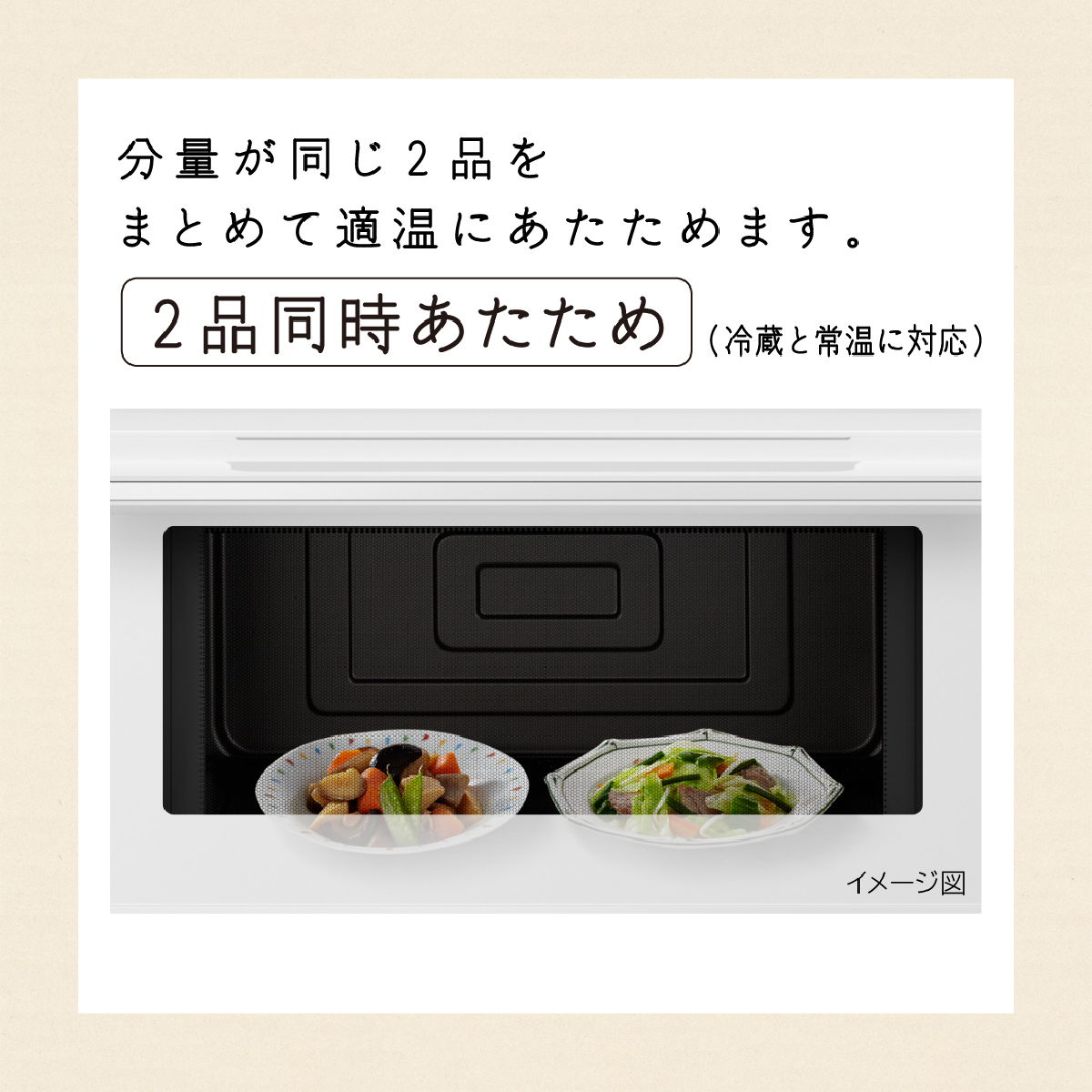 おかずとごはんを一緒に適温で温められる2品同時あたため