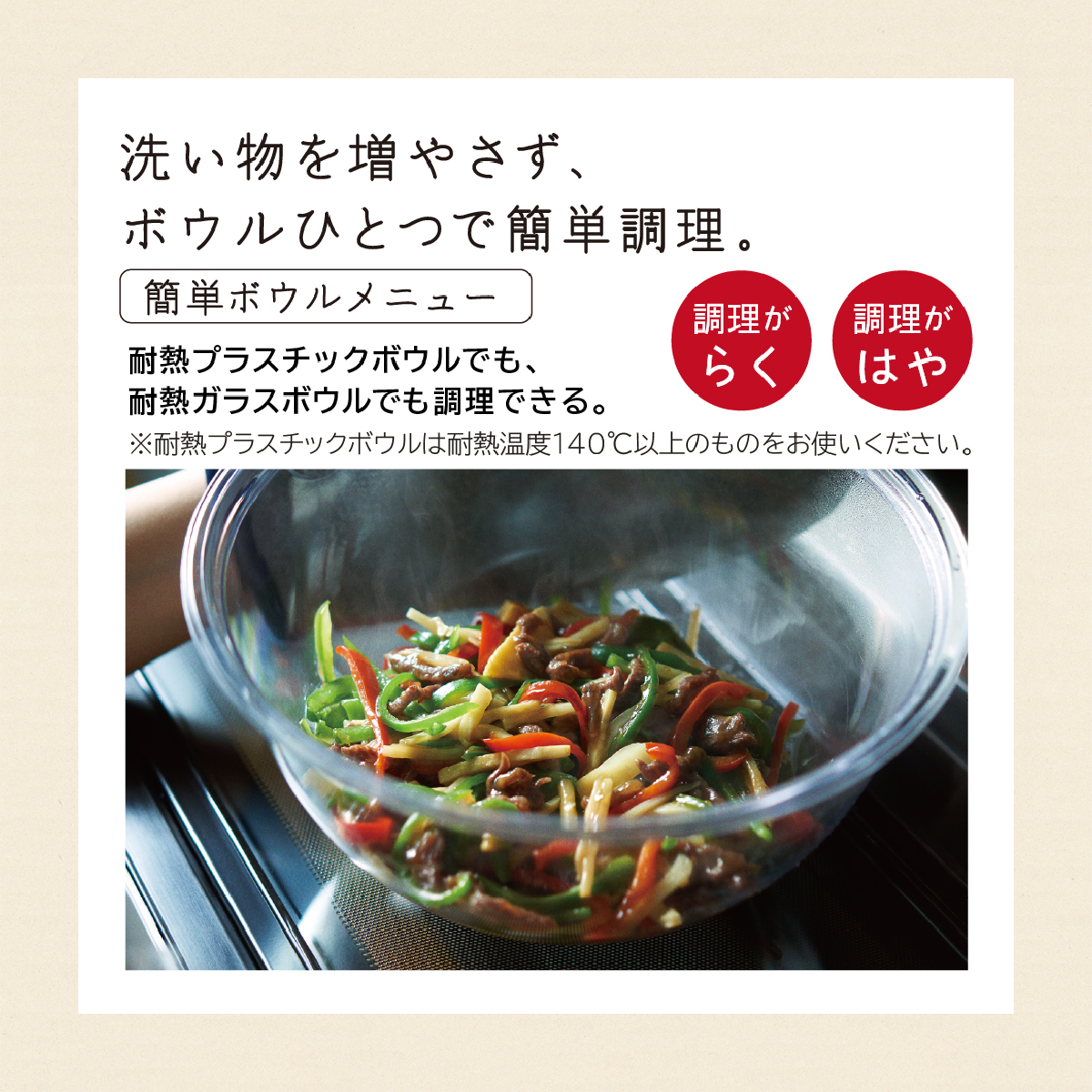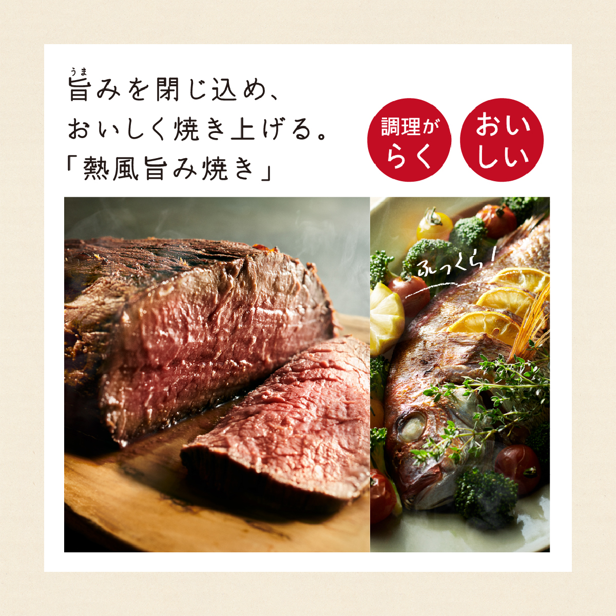 準備・操作・調理も「らく」、予熱も「はや」く、料理が「おいしい」、