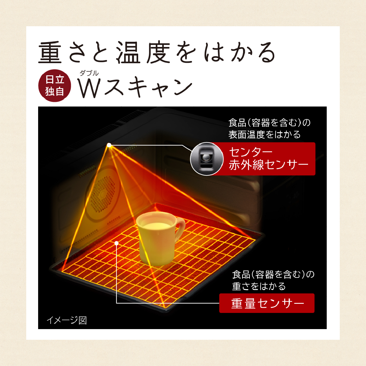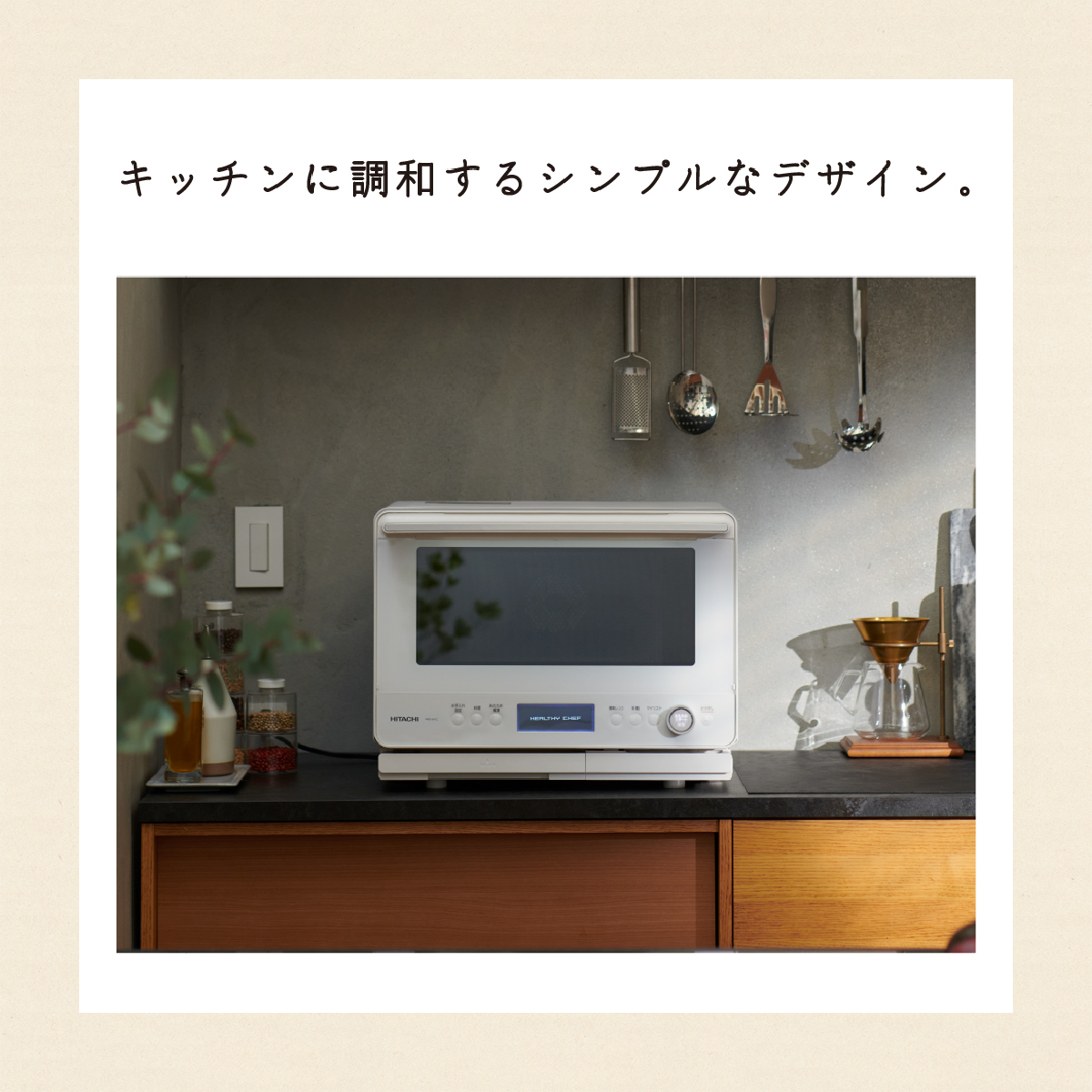 ●検索用:電子レンジオーブンオート調理HITACHIシンプルデザイン