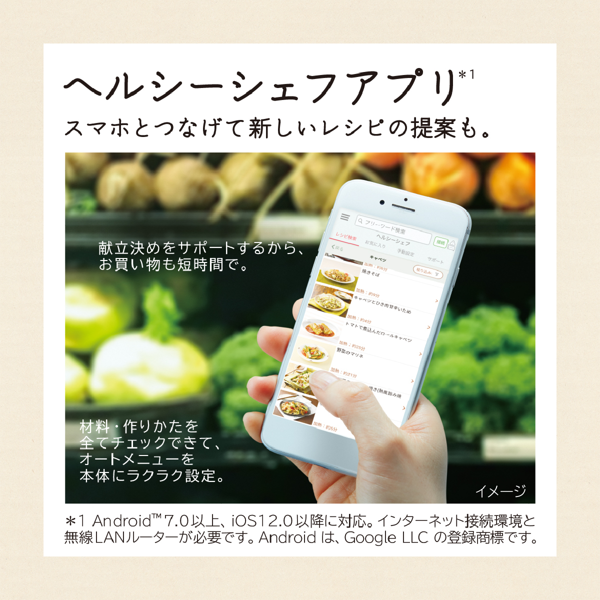 スマホでレシピを検索できる家事サポートアプリ「ハピネスアップ」もあります。
