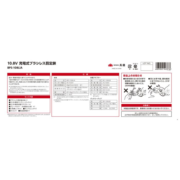 ●1回の充電でφ7~16mmの生木を約1、000回切断することが可能です