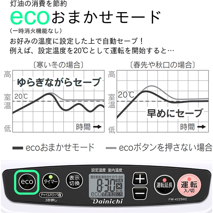 ●室温変化にあわせて、燃焼量を自動コントロールするecoおまかせモード