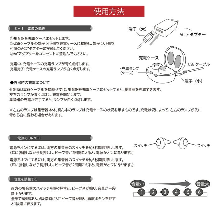 ●左右それぞれ音量が6段階で調節でき、自分に合った音量で使用できます