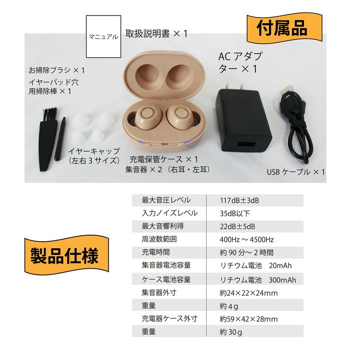 ●イヤーキャップ3サイズ・USBケーブル・掃除セットなど充実の付属品が揃っています