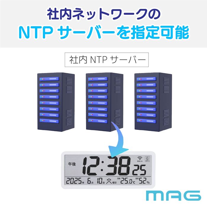 ●NTPサーバー接続先を任意選択可能のため、企業様の設備品としても利用できます。