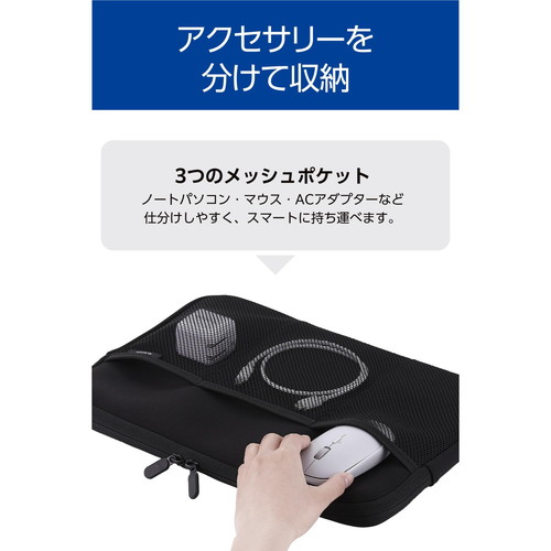 パソコンケース 11.6インチ メッシュポケット×3 撥水 薄型 耐衝撃 ダブルファスナー スリーブ ブラック