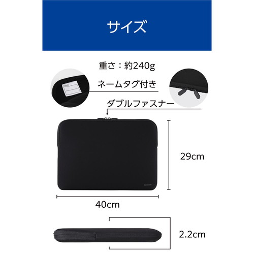 パソコンケース 11.6インチ 撥水 薄型 耐衝撃 ダブルファスナー スリーブ ブラック