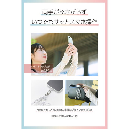 ●手首や腕から提げて持ち歩けるので、両手がふさがらずいつでもサッとスマートフォンの操作ができます。