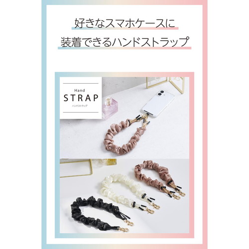 スマホストラップ シュシュ風デザイン ハンドストラップ 手首 落下防止 軽量 長さ調整可 iPhone/Android対応 ブラック