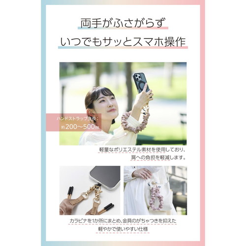 ●手首や腕から提げて持ち歩けるので、両手がふさがらずいつでもサッとスマートフォンの操作ができます。
