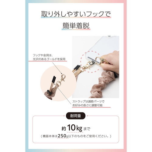 ●取り外しやすいフックを使用しているので、ストラップの着脱が簡単にできます。