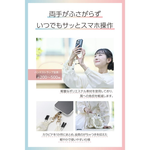 ●手首や腕から提げて持ち歩けるので、両手がふさがらずいつでもサッとスマートフォンの操作ができます。
