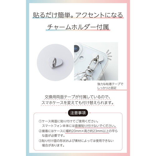 ●スマホの背面に貼って使える、ハート型のチャームホルダーが付属しています。