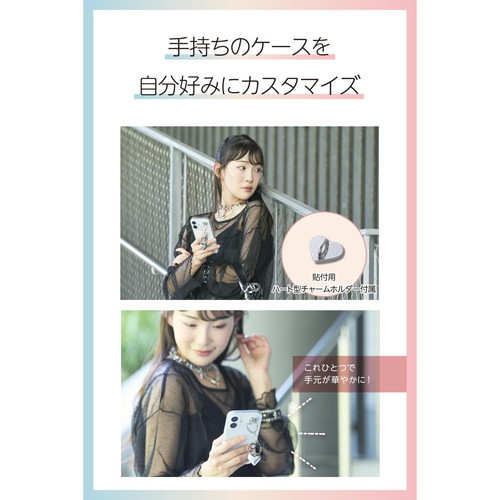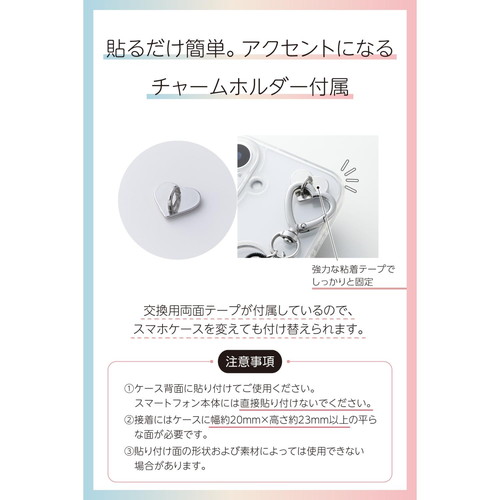 ●スマホの背面に貼って使える、ハート型のチャームホルダーが付属しています。