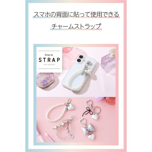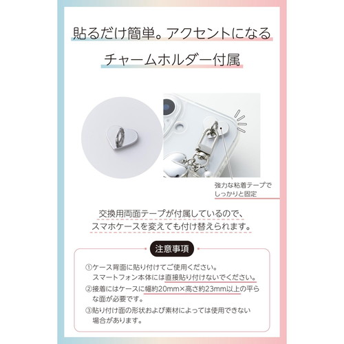 ●スマホの背面に貼って使える、ハート型のチャームホルダーが付属しています。