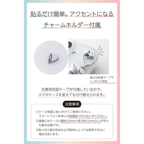 ●スマホの背面に貼って使える、ハート型のチャームホルダーが付属しています。