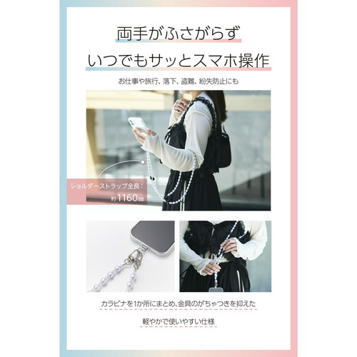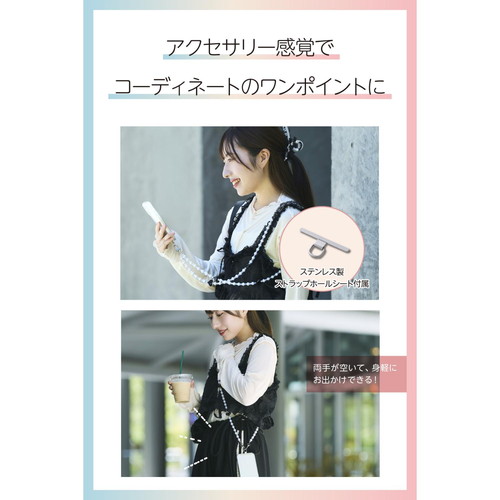 ●両手が空いて身軽になるので、普段のお出かけはもちろん、お仕事や旅行など、さまざまなシーンで活躍。落下、盗難、紛失防止にもなります。