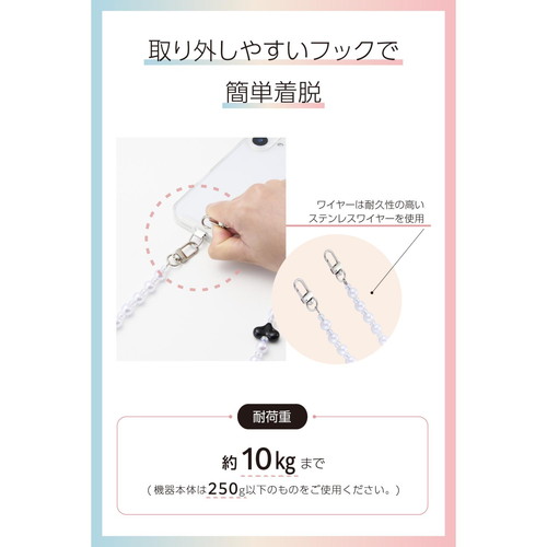 スマホストラップ ハートビーズ ショルダー 首掛け ストラップホルダーシート付 iPhone/Android対 落下防止 シルバー