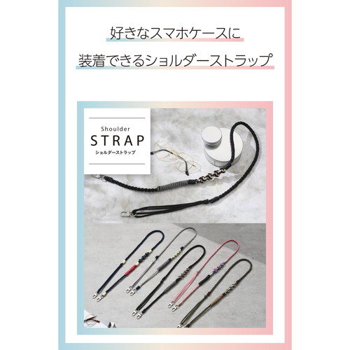 ●ケースにストラップホールがなくても、付属のストラップホールシートをスマートフォンとケースの間に挟むだけで使用でき、取り外しも簡単です。