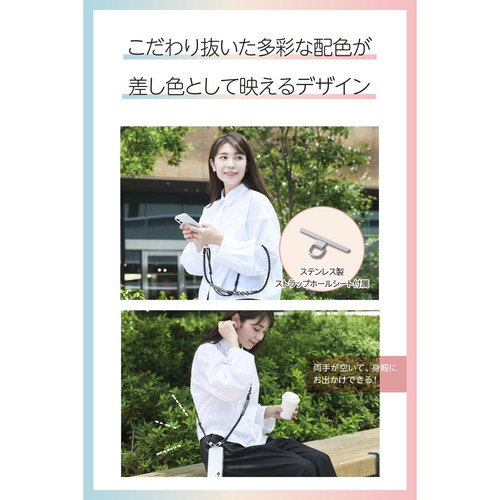 ●両手が空いて身軽になるので、普段のお出かけはもちろん、お仕事や旅行など、さまざまなシーンで活躍。落下、盗難、紛失防止にもなります。
